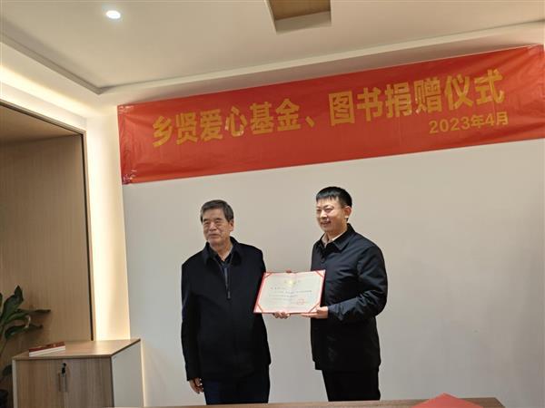 鄉(xiāng)賢項(xiàng)美根捐贈人民幣10萬元以及自傳《回眸八十春》