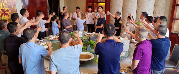 9 日上午8點,我們乘坐兩輛大巴車從公司出發,大約11點半,團隊成員懷著期待與興奮的心情順利抵達浦江國際大酒店。剛一下車,縣委領導及樂門集團領導的熱情迎接就讓大家感受到了滿滿的溫暖,豐盛美味的接風宴更是讓大家的味蕾得到了極大的滿足。