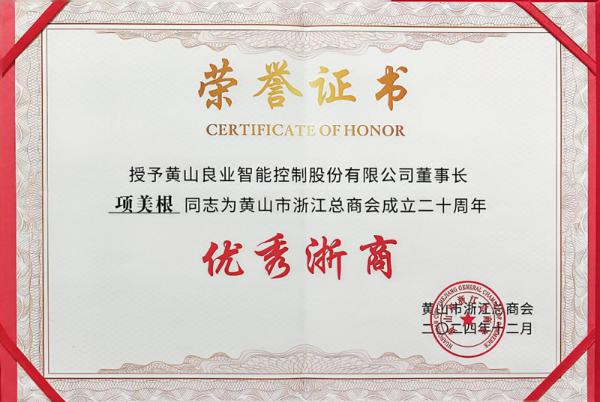黃山良業公司項美根榮獲“黃山市浙江總商會成立二十周年優秀浙商”