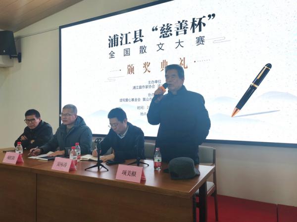 2024年12月29日,公司終身名譽蕫事長項美根先生受邀參加浦江縣“慈善杯”全國散文大賽頒獎典禮。