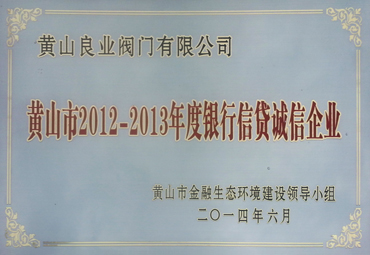 2014年6月,黃山市金融生態環境建設領導小組研究決定向黃山良業閥門有限公司授牌為“2012-2013年度黃山市銀行信貸誠信企業” 。