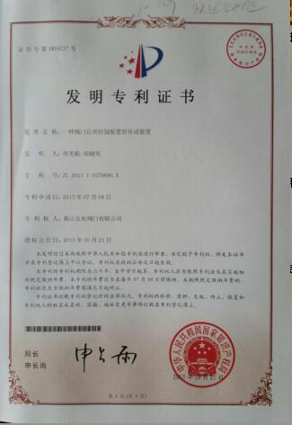 黃山良業閥門有限公司借貫徹國標《企業知識產權規范管理》的東風,堅持實施科技創新戰略,以提高企業創新能力為己任,拓展高新技術企業發展空間。繼擁有的“一種閥門電動裝置”發明專利之后,又成功研發一種閥門手動裝置,并獲得發明專利,發明名稱:一種閥門啟閉控制裝置的傳動裝置,專利號:ZL201310279890.X,授權公告日:2015年10月21日。標志著公司在知識產權上又取得進步。